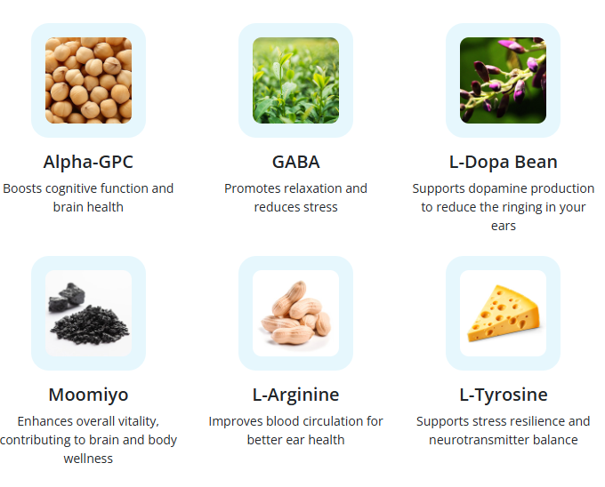 Another thing that catches attention is the formula. Tinnitrol includes ingredients such as Alpha-GPC, GABA, L-Dopa Bean, Moomiyo, L-Arginine, and L-Tyrosine, all presented on the site as part of a blend meant to support hearing, balance, and overall wellness.